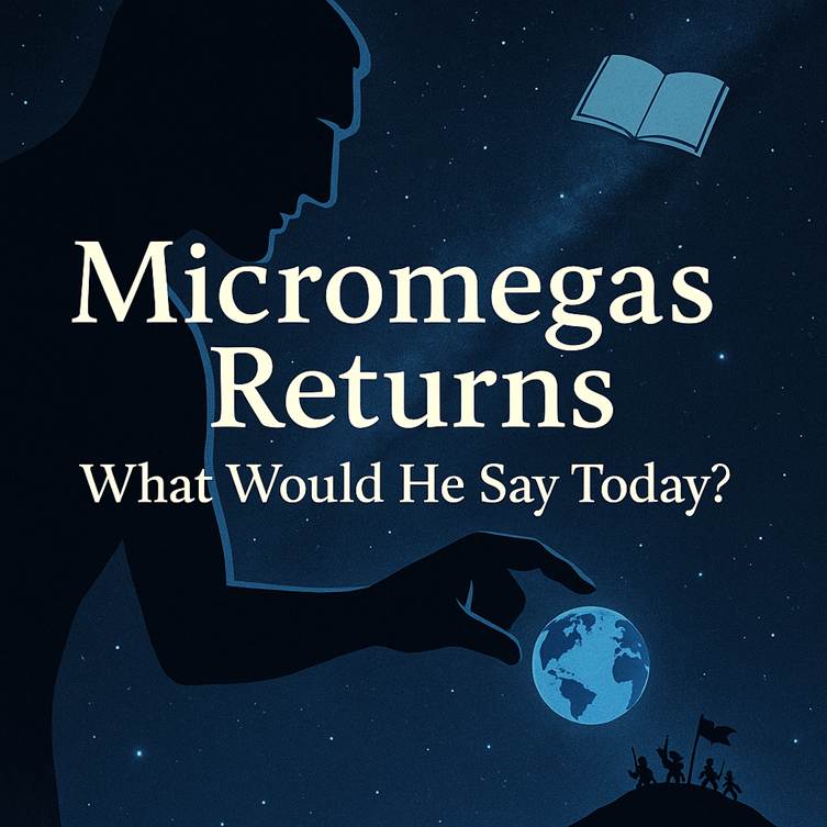 Voltaire’s Micromegas remains one of the most delightful works of philosophical satire: giants from Sirius and Saturn who look at humanity and find our quarrels as small as the buzzing of ants. Satire can often teach us more than solemn philosophy. Voltaire’s giant travellers do not despise humanity — they simply see us in proportion. Revisiting the story in 2025, I imagine what Micromegas might think of our world — our pretensions, our endless nationalism, our technological obsessions, our capacity for both cruelty and creativity. This reflection is less about science fiction than about perspective: how to see ourselves as we truly are, without illusions, and perhaps laugh a little at our own pretensions.