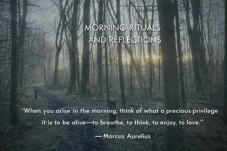 My friend, I do not have many rituals. Upon waking, I check my watch to see how I slept, visit the bathroom, step on the scale, and drink a glass of cold mineral water.