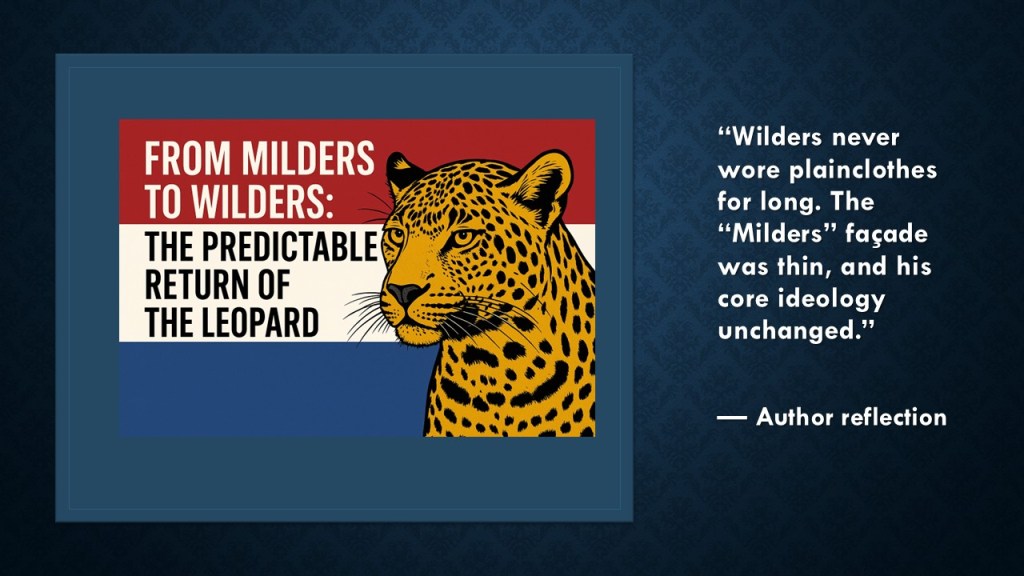 The collapse of the Schoof government could not have come soon enough. The belief that Wilders could remain “Milders” once in power was a fantasy — the leopard, true to form, did not change its spots. Instead, his populist, xenophobic agenda quickly resurfaced, confirming what was already clear to those unwilling to indulge in political wishful thinking.