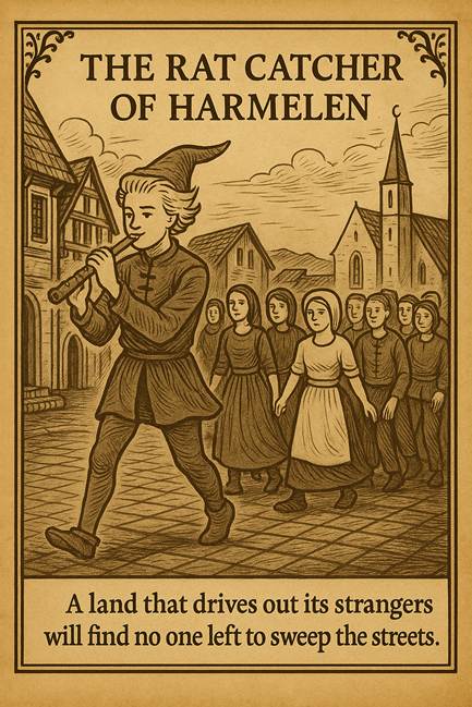 The Rat Catcher smiled, for he knew that the simpler the tune, the easier the march. And as the flute led them down the road of fear, none stopped to ask who would sweep the streets, staff the hospitals, or build the houses when the music was over.