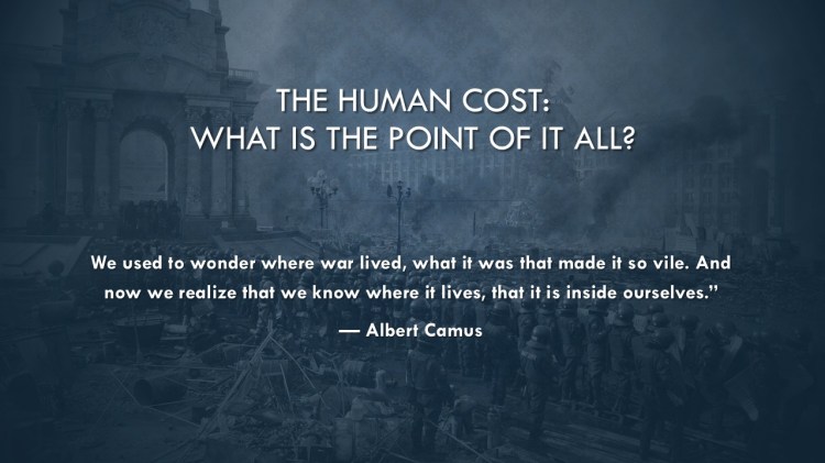 My God, so many victims. All at the behest of a mad will, drunk with absolute power… What is the point of it all?”