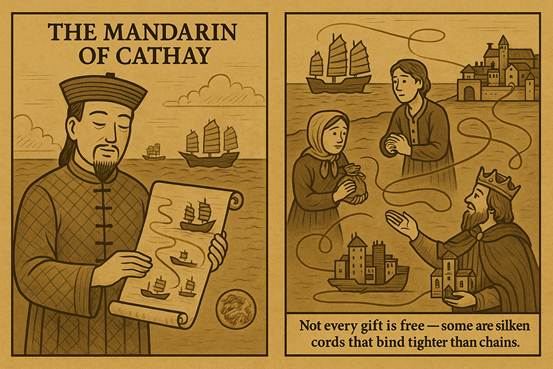 The Mandarin sailed the seas with fleets of junks and scrolls of treaties. Wherever the winds carried him, he promised “peaceful partnership” and “shared prosperity.” His words were silk, his smile serene, and his patience unending.