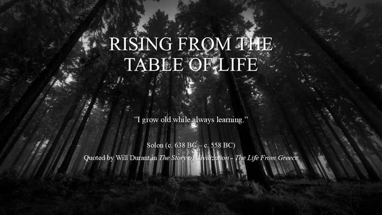 One day, sooner or later—suddenly or gradually—my own time will come. When that moment arrives, I hope to leave the table of life with grace. Like a grateful guest rising from a long and abundant meal shared with thoughtful companions—after the dessert has been served and the wine and port (or, better yet, a fine Hennessy X.O.) enjoyed—I will bow out. And I will return to nature with the awareness that, in the words of Ludwig Friedländer, as quoted by Will Durant: