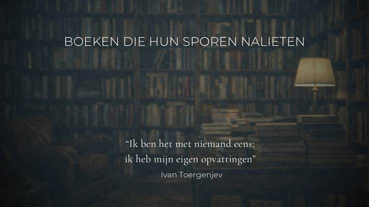 Deze overweging ontstond naar aanleiding van een eenvoudige vraag in de ochtend. Geen definitieve antwoorden, slechts herinneringen aan boeken die iets hebben achtergelaten. Wie wil, mag het gesprek voortzetten.